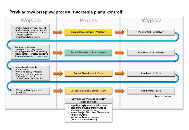 - Wymagania – jeszcze bardziej szczegółowe wyjaśnienie poszczególnych wymagań Planu Kontroli, bazujące na zdobytych doświadczeniach, specyficznych wymaganiach klientów (CSRy), czy podręcznikach klientów.